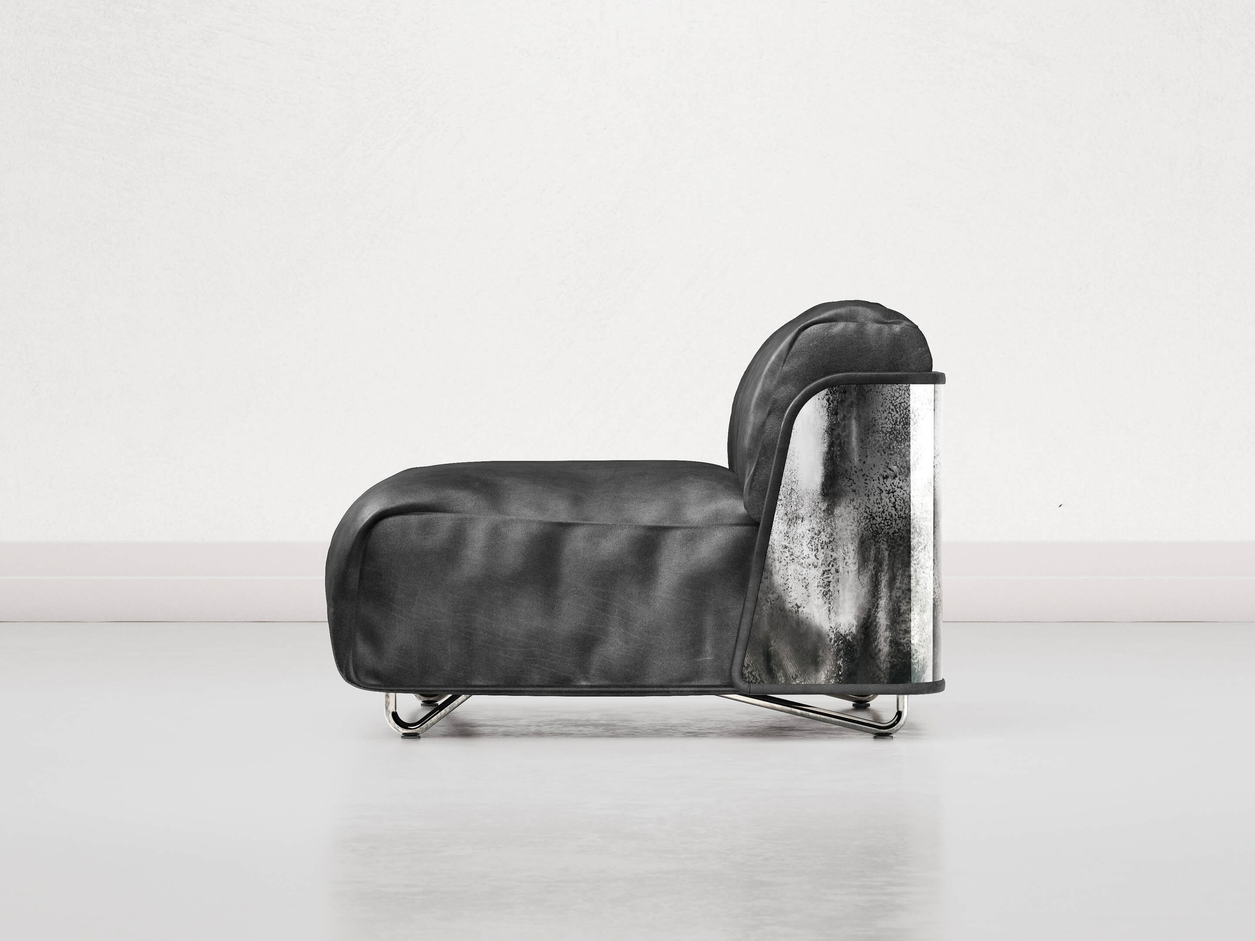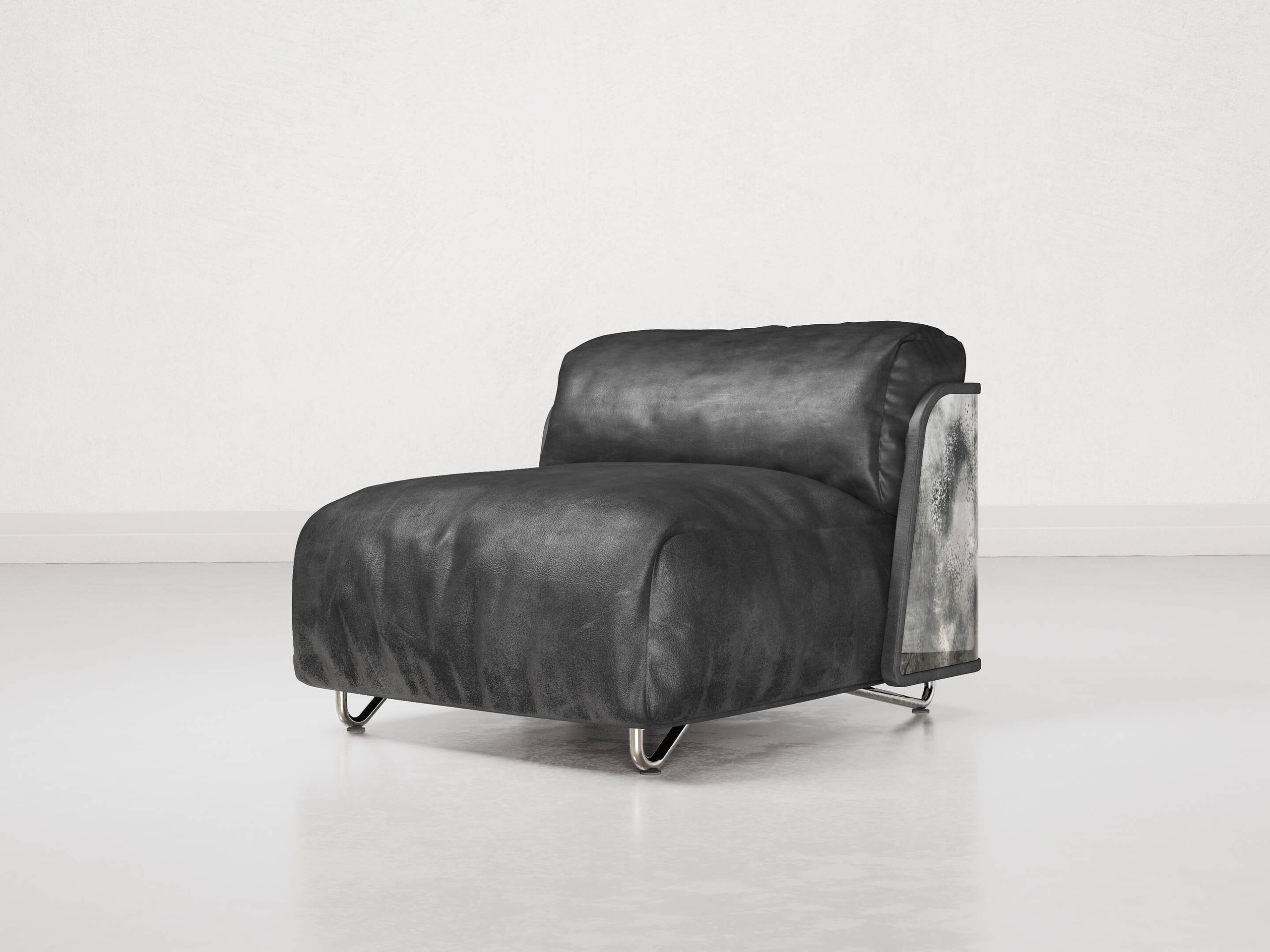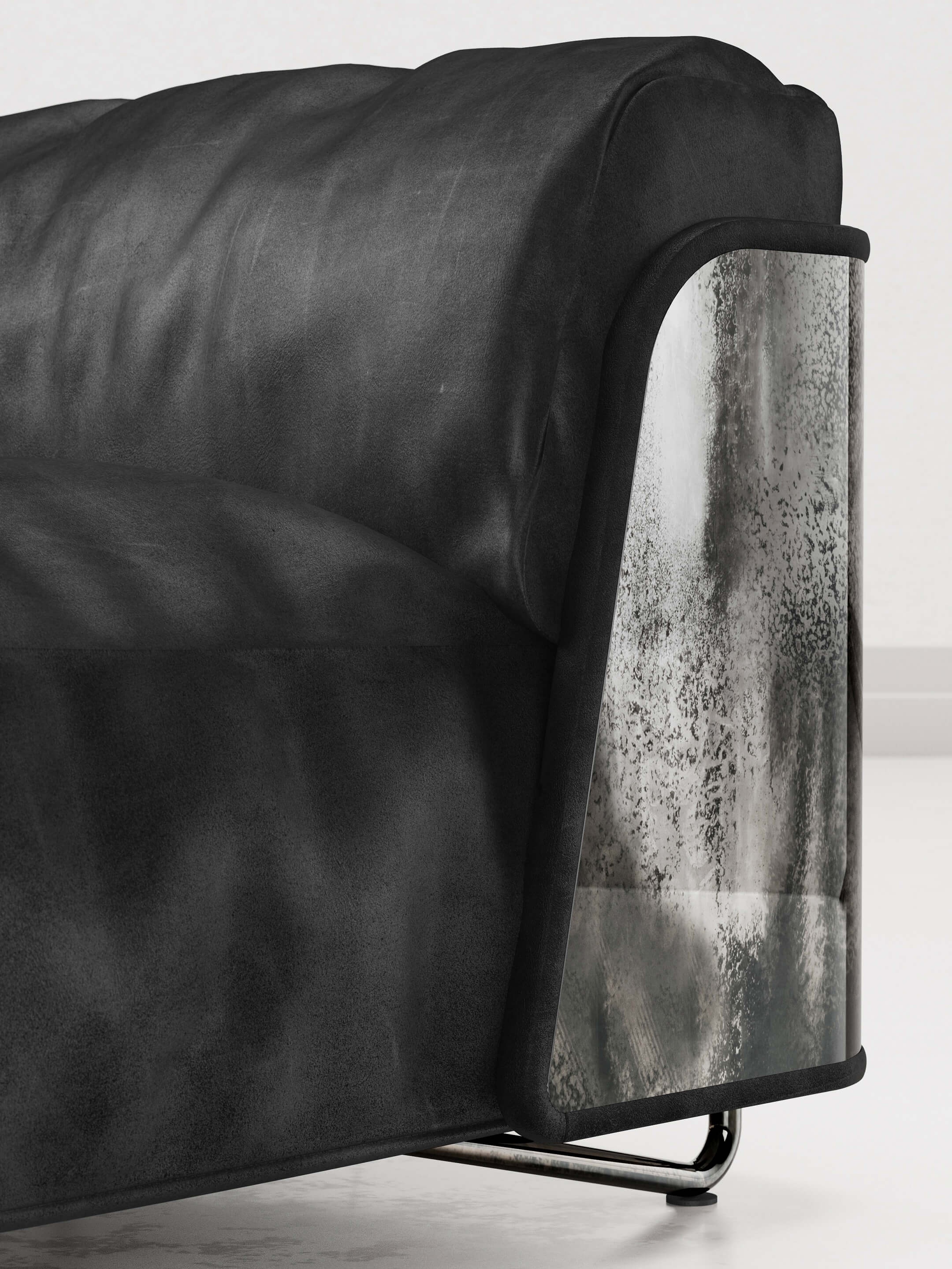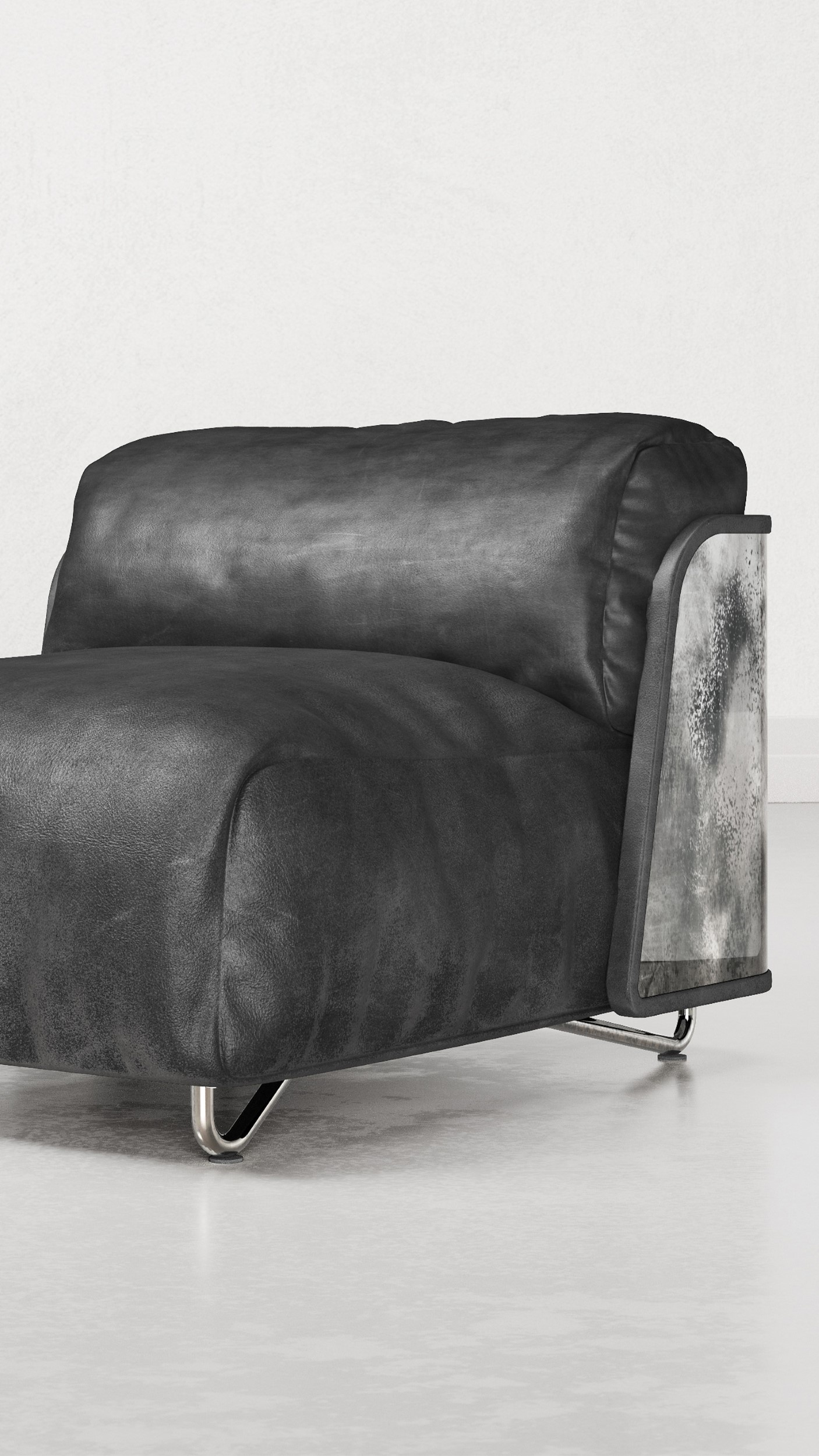 It takes luxury to the next level by ncorporating acid- etched metal that brings back the memory of old Venetian mirrors as a decorative ribbon that hugs its flowing curves.