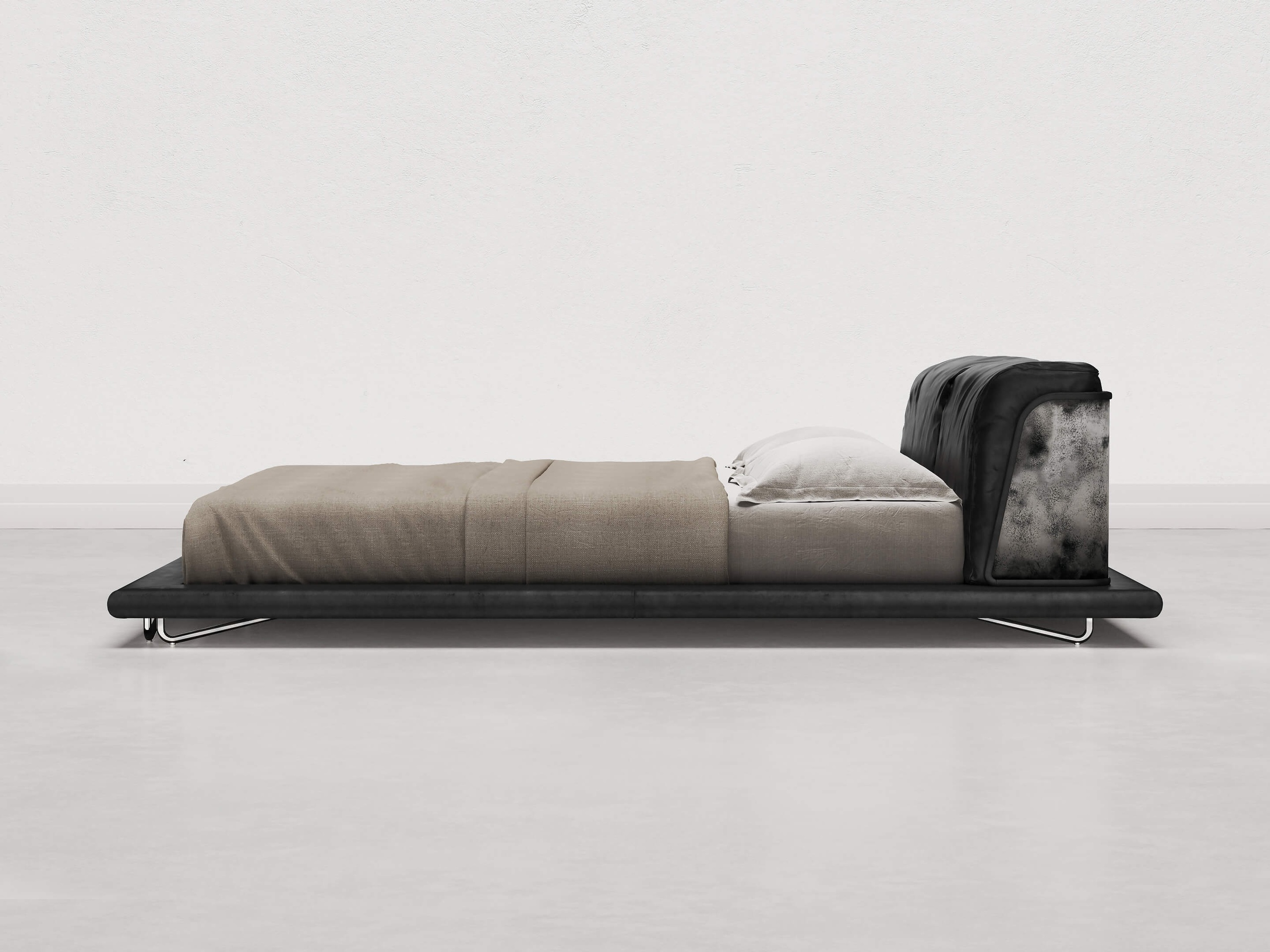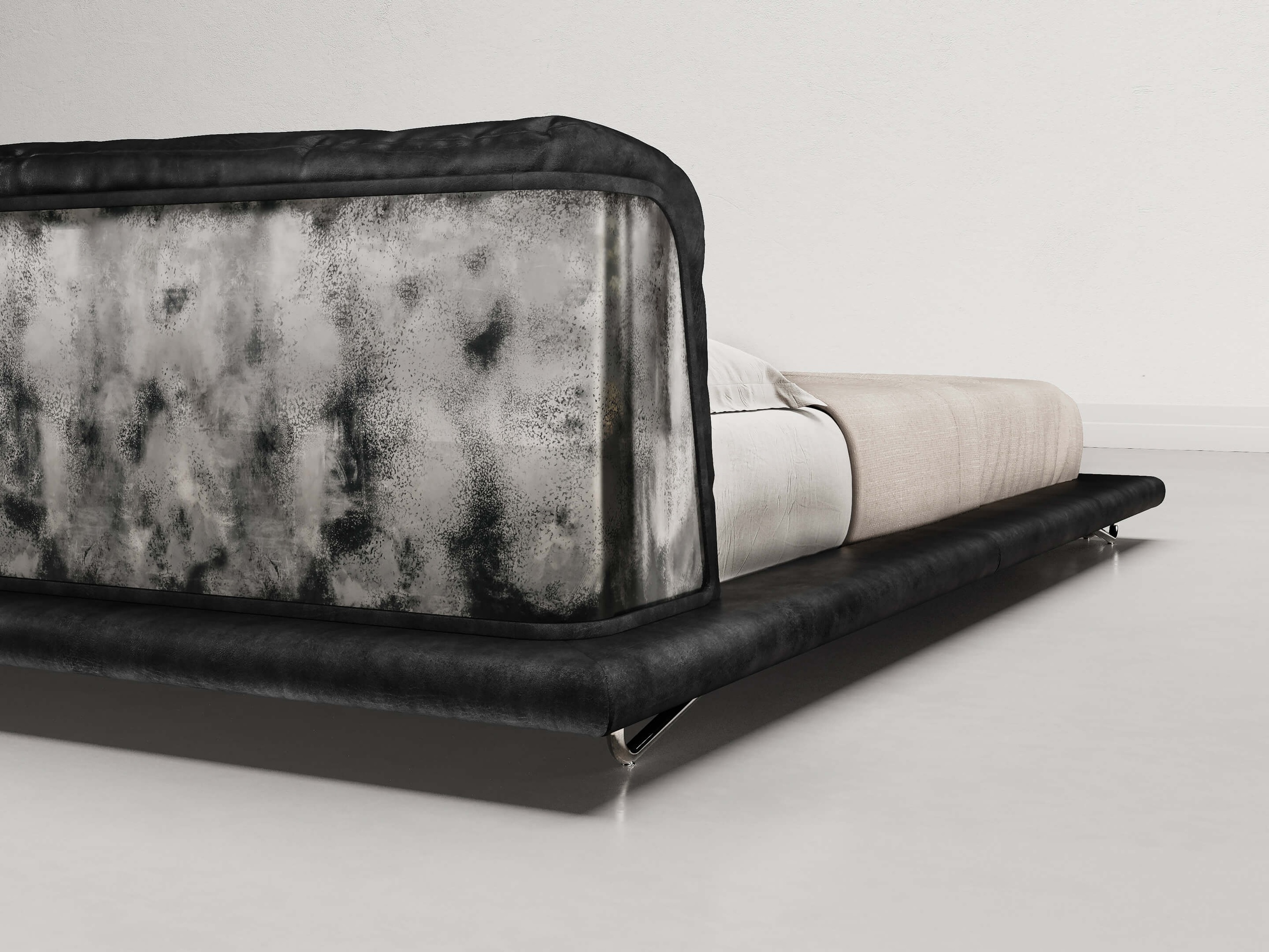 The finishes in black brushed brass and raw silver add a touch of refinement and personality, while the size options, King Size and Queen Size, can meet all space and comfort needs.