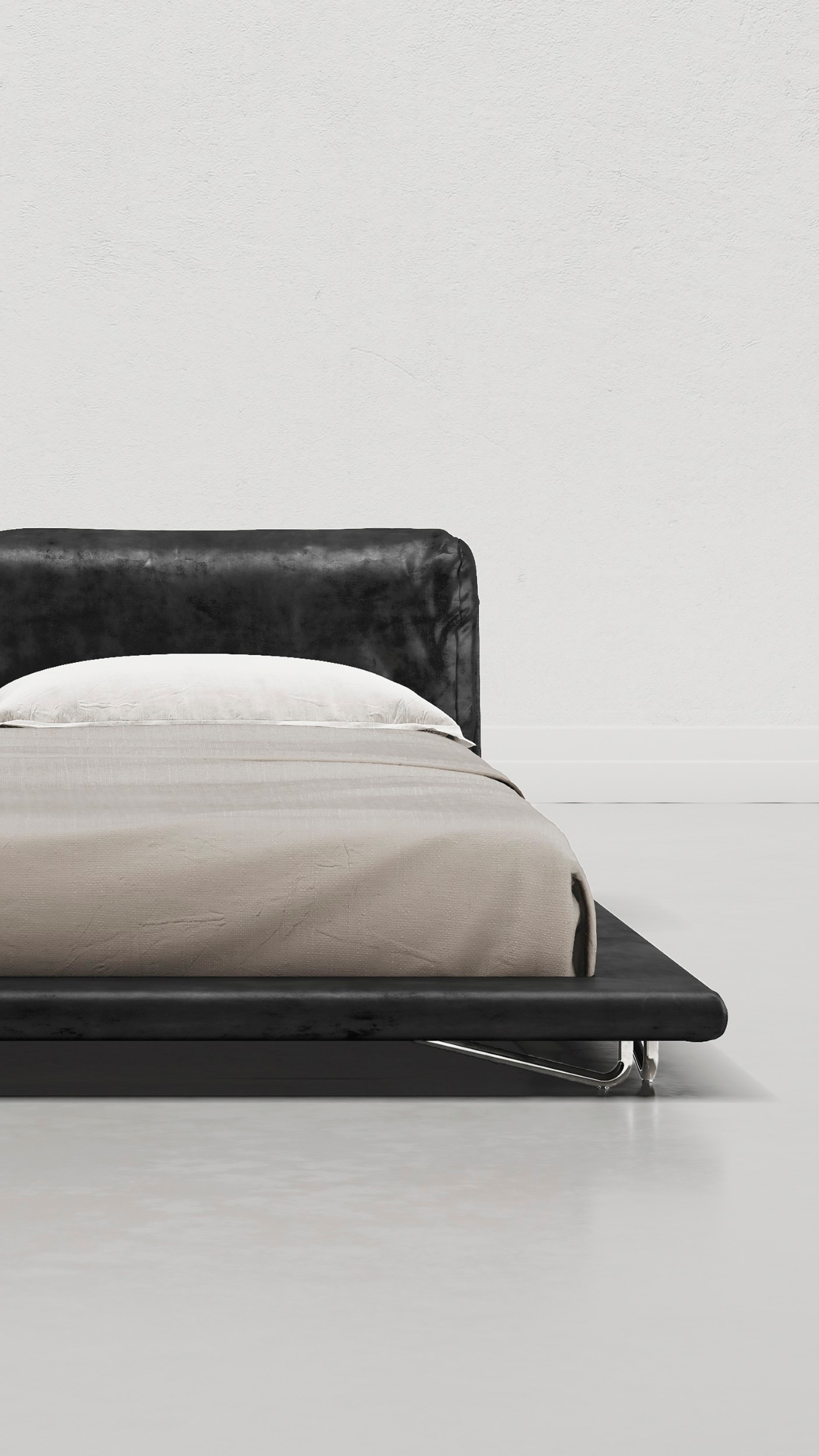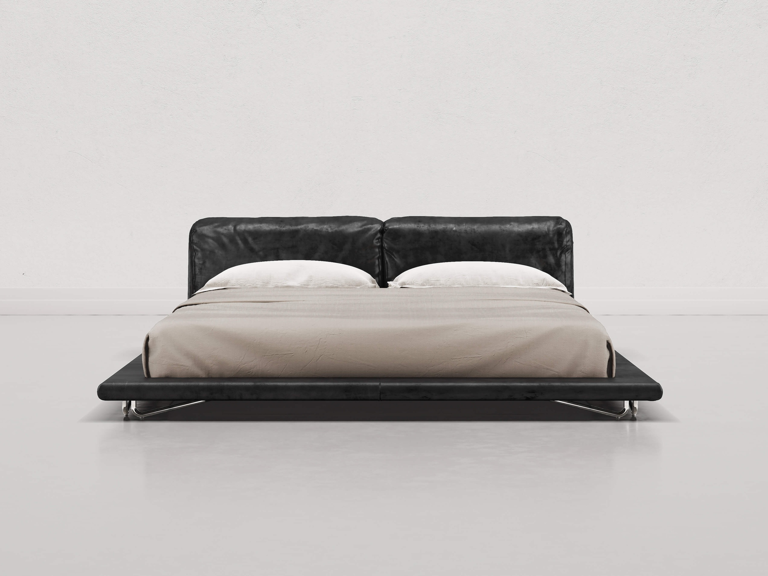 The Saint Germain collection expands with the introduction of a bed. The argentone frame that characterizes the sofa returns on the back of the headboard of this iconic piece, making it perfect to stand out at the center of any room. The low platform and slightly protruding edge evoke Japanese-inspired environments, but the leather it’s made of gives a decidedly rock imprint to this visually striking bed.