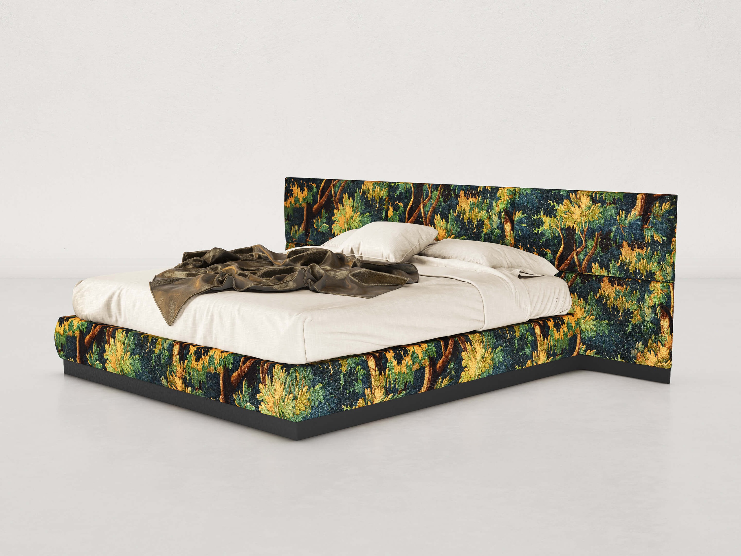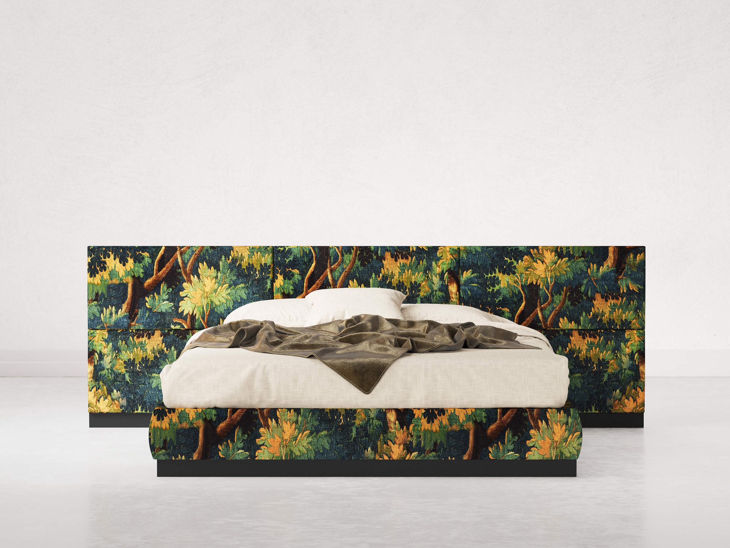 Inspired by the iconic 1950s design movement of the Italian Style, the Senza Fine bed lends itself to changing skins depending on its surroundings.