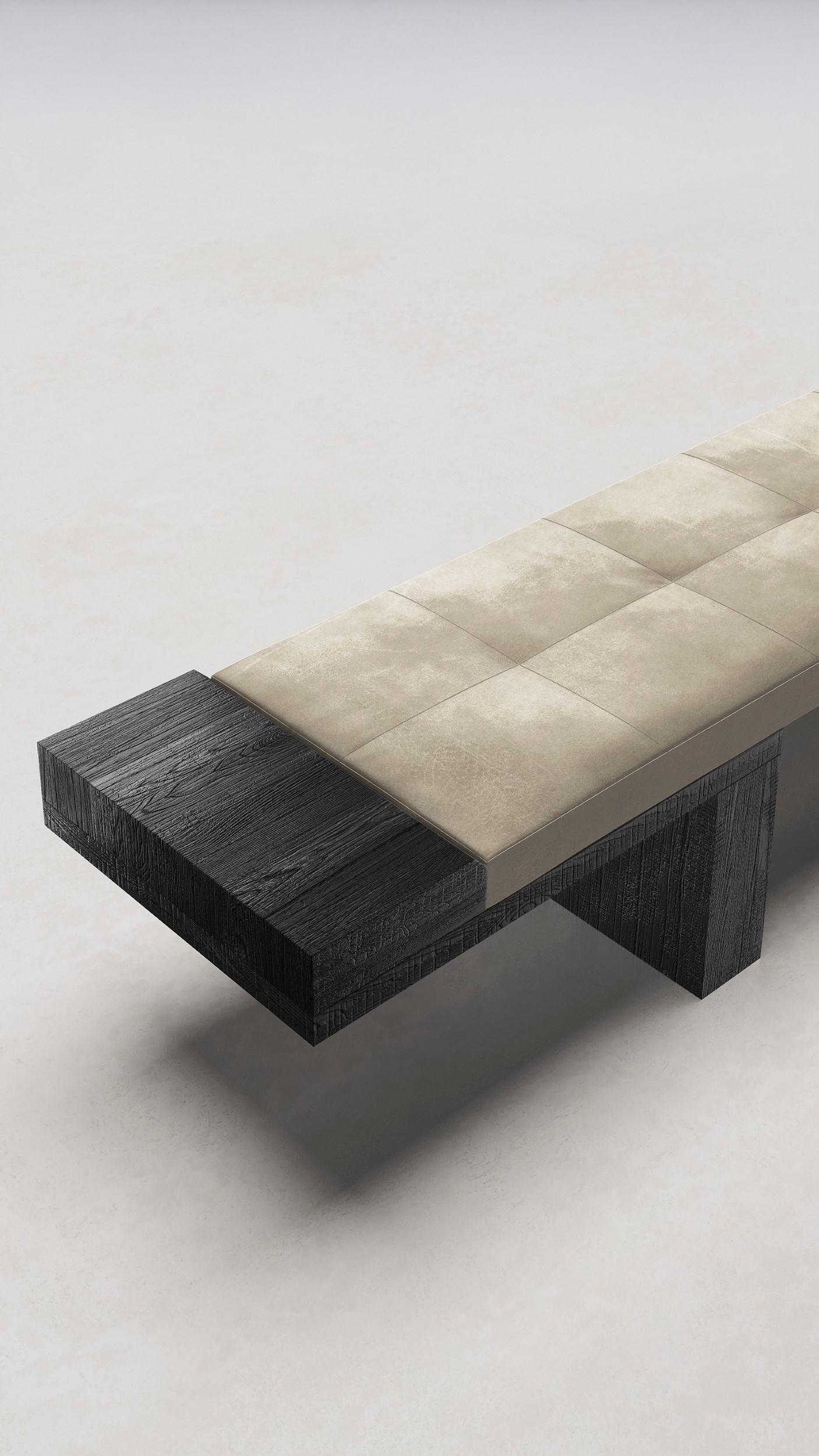 The clean and essential shape of the bench is once again enhanced by the materials.