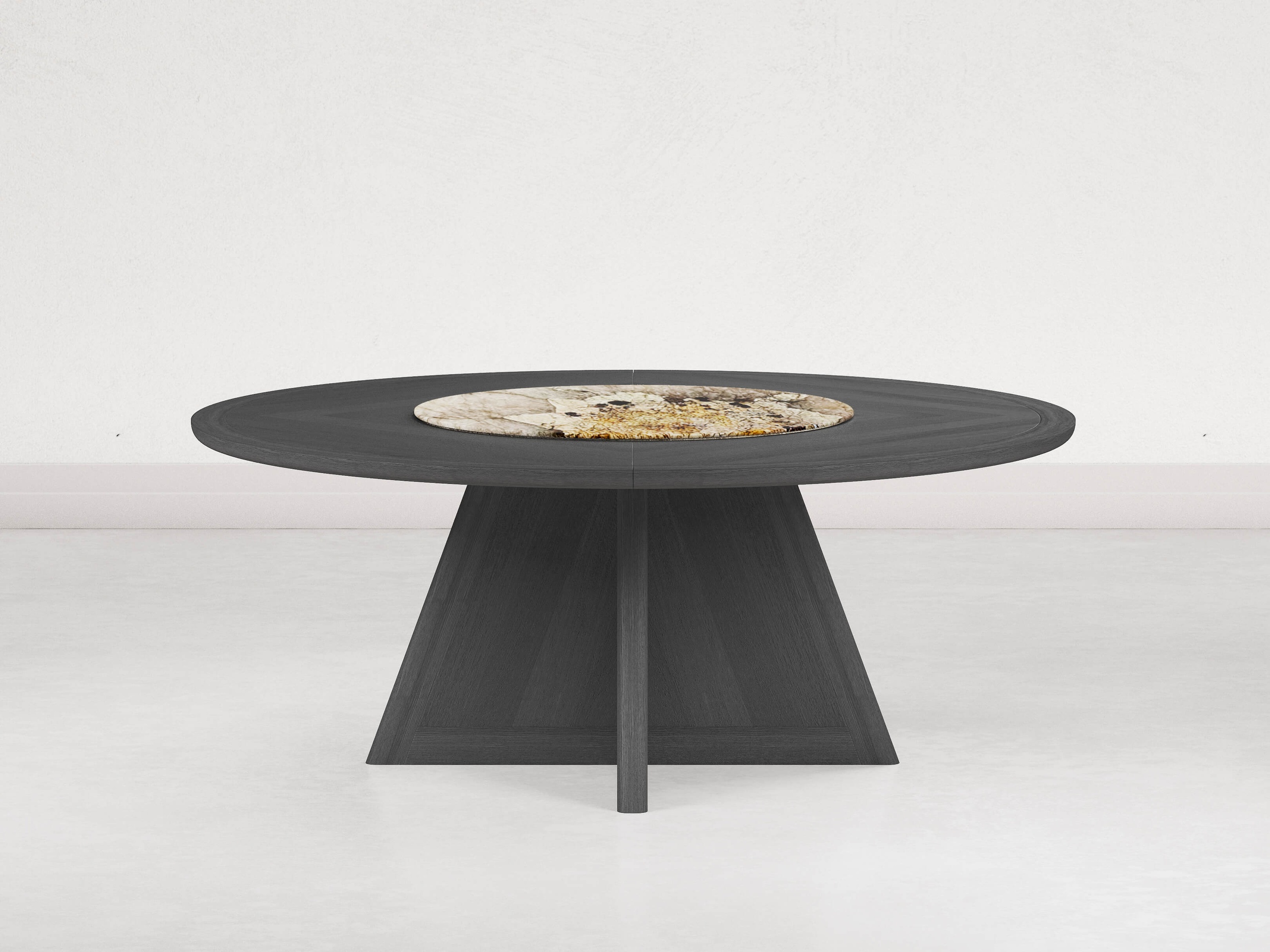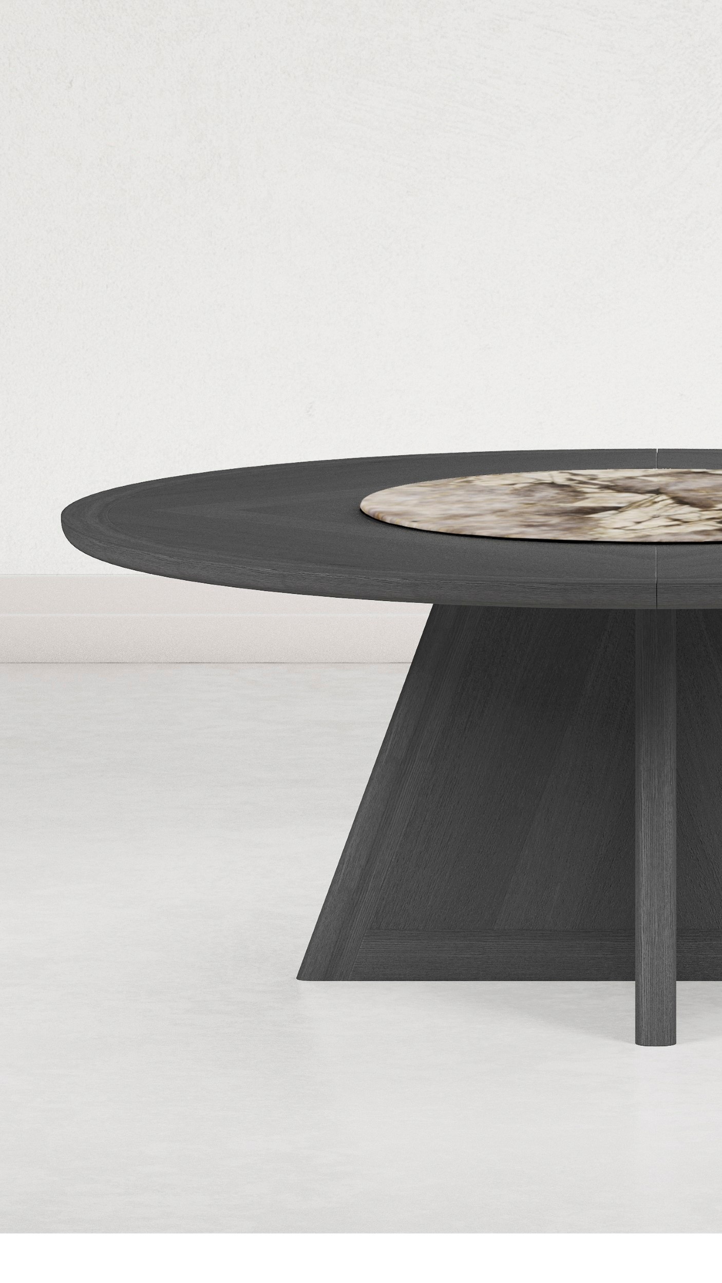 The result is austere and rigorous furniture, softened by the wood’s smoothness, which is flame-treated to bring out the grain in a materiality that can only be achieved with solid wood.